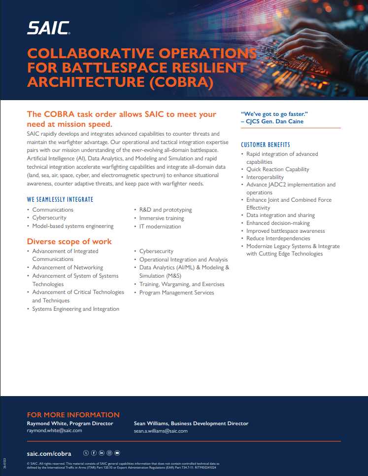 SAIC delivers proven program management expertise and technological innovation for rapid development of multi-domain command & control capabilities that empower performance and enable operational advantage.